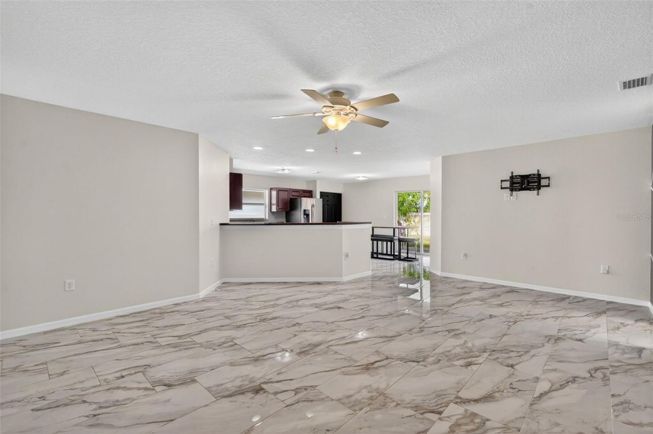 Welcome to a beautifully maintained home nestled in a peaceful Ruskin community. This inviting residence combines comfort, style, and modern upgrades throughout. The spacious open floor plan is perfect for everyday living and entertaining, featuring upgraded porcelain tile flooring throughout the entire home, no carpet anywhere. The contemporary kitchen boasts sleek countertops, stainless steel appliances, and ample cabinetry, flowing seamlessly into the bright and open living and dining areas. The primary suite offers a relaxing retreat with a walk-in closet and an en-suite bathroom complete with dual sinks and a walk-in shower. Step outside to a covered patio overlooking a well-kept backyard, ideal for relaxing or hosting family and friends. Residents of this community enjoy access to three sparkling pools, three beautiful parks, two clubhouses, and a fully equipped fitness center, along with additional recreational spaces for all ages. Conveniently located near shopping, dining, schools, and major highways, this home provides easy access to Tampa, St. Petersburg, and the beautiful Gulf Coast beaches.