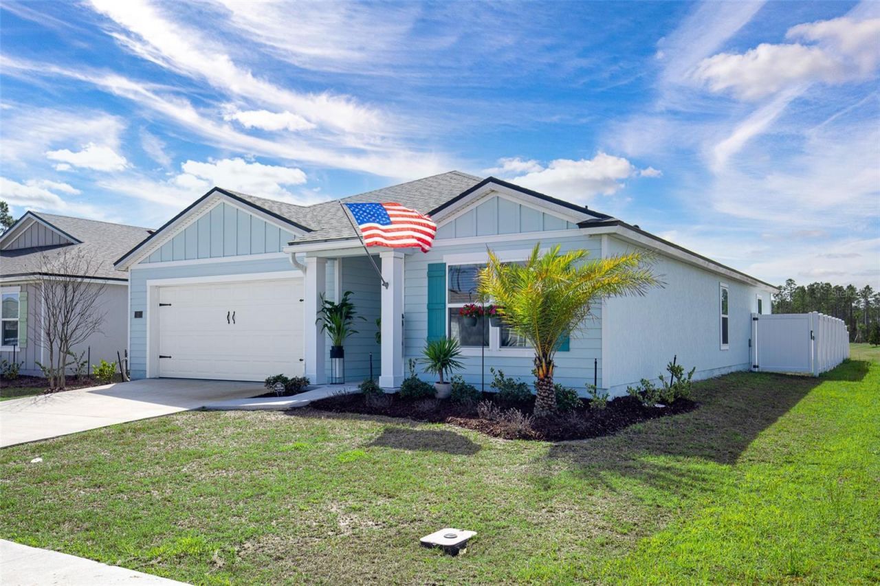 Welcome to this beautifully maintained 2024 Aria model home, which is priced much cheaper than the new construction nearby! This 3 bedroom, 2 bath 1,714 sq ft home is built with ample space and luxury. Enjoy the open floor plan, modern design, and effortless Florida living with the covered lanai, and fully fenced in backyard on a corner lot. This home is perfect for pets and little ones alike. Additional highlights include the zero-entry resort style pool, splash pad, pickleball courts, playground, gym, biking and walking trails, clubhouse, and so much more! Furniture is all negotiable as well. Located in a quiet Palm Coast community, with schools, shops, and parks nearby.