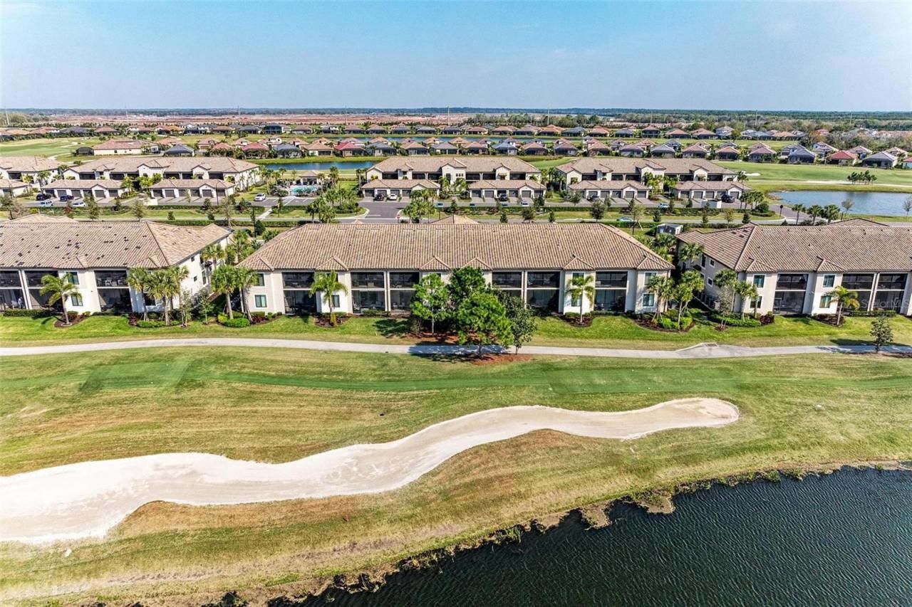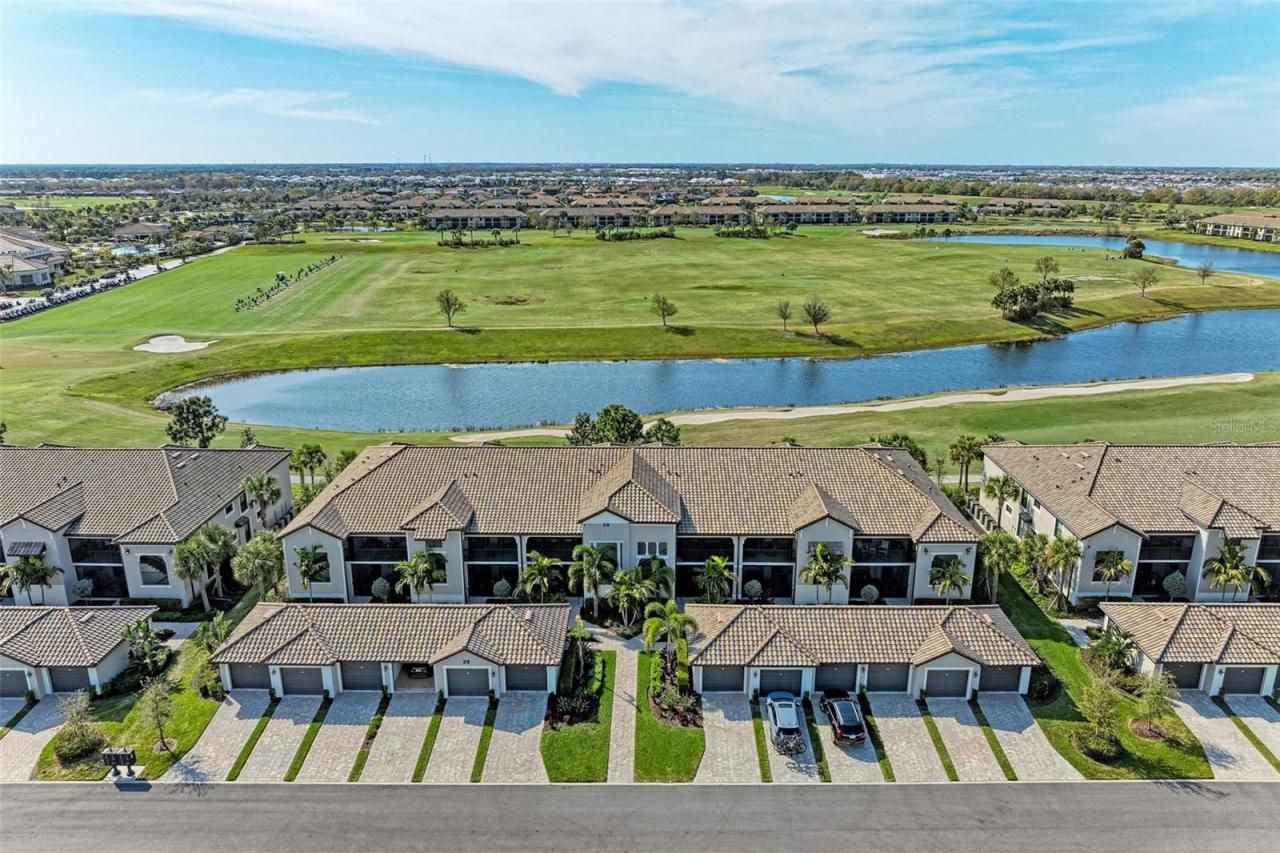 RENTED FOR 2026 SEASON: Experience resort-style living at Lakewood National Golf Club in Lakewood Ranch with this stunning first-floor, turnkey-furnished, dog-friendly condo available for rent. Overlooking the 1st hole of the Piper Course, this beautifully appointed unit accommodates up to six guests and offers 2 bedrooms, 2 bathrooms, a versatile den with a sleeper sofa, and a one-car garage.Step into the open-concept living area featuring a gourmet kitchen with stainless steel appliances, granite countertops, a large center island, and a pantry. The primary suite boasts dual closets, a king-size bed, and a spa-like en-suite bathroom. The private guest bedroom is equipped with a king-size bed that can also be configured as two twin beds for flexibility. Recent upgrades as of December 2024 include luxury vinyl plank flooring in the bedrooms and den, along with new furniture in the bedrooms, den, and lanai.Enjoy serene sunrise views from the front entry or unwind with breathtaking sunsets on the rear lanai. Conveniently located near a private satellite pool, this unit also features impact-rated glass for added security and peace of mind. Positioned close to Lakewood National's practice putting green and short game area, residents also have access to exceptional amenities including a beach-entry lagoon pool, Tiki bar, full-service spa, state-of-the-art fitness center, and the Grand Clubhouse offering indoor and outdoor dining.Sports enthusiasts will appreciate the tennis courts, pickleball, bocce ball, and two Arnold Palmer-designed 18-hole championship golf courses. All this within a gated community with 24-hour security, offering the perfect blend of relaxation and recreation.